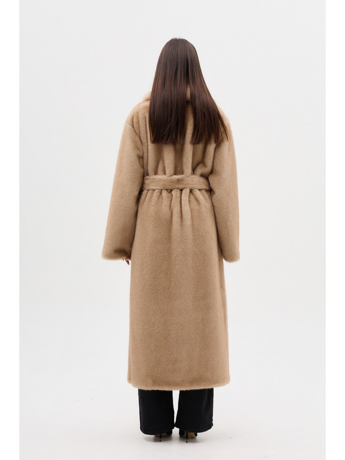 Опис: Штучна шуба з пріспущеним рукавом, з розпорками з боків, кишеня-прорізна, англійський комір, застібається під горло, хутро під норку на дубляже