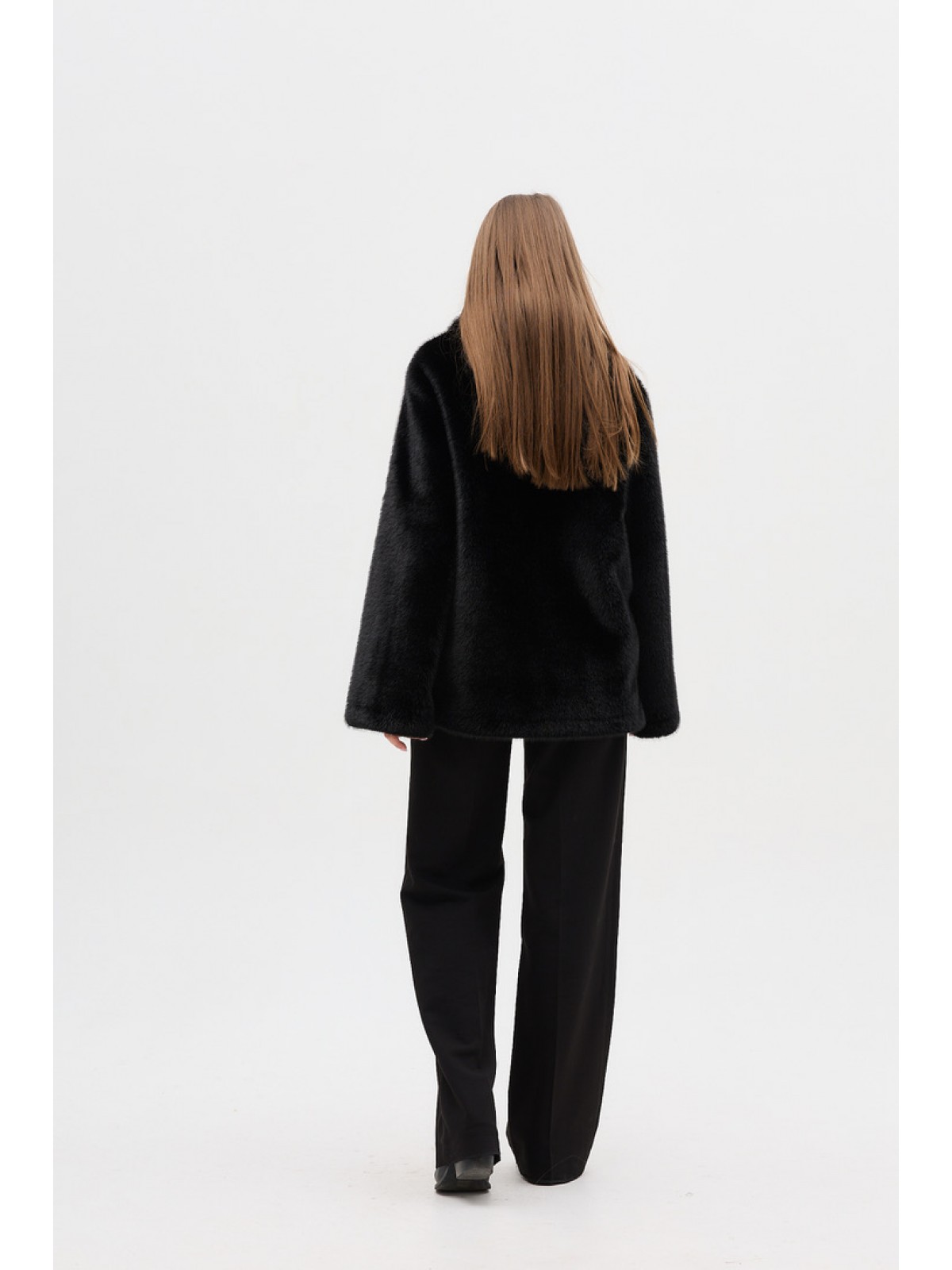 Опис: Штучна шуба з пріспущеним рукавом, комір-шалька, кишені накладні, хутро під норку на дубляже