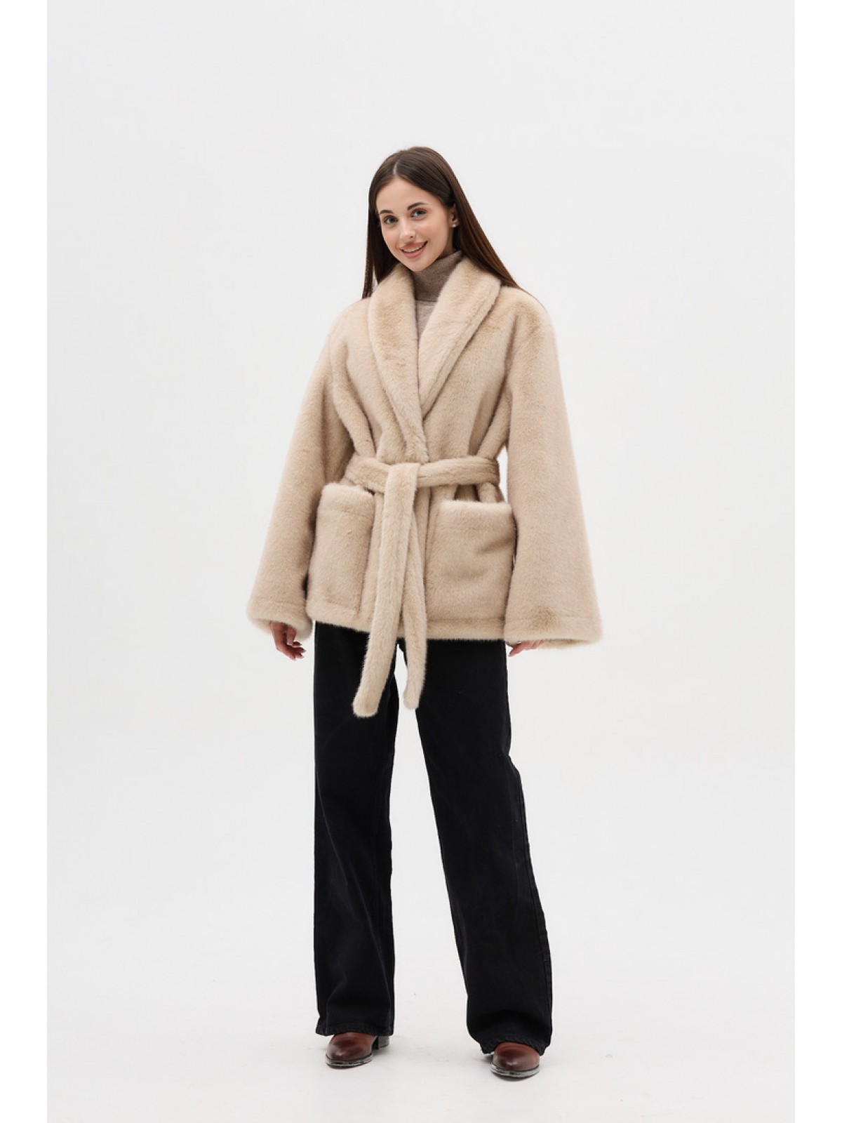Опис: Штучна шуба з пріспущеним рукавом, комір-шалька, кишені накладні, хутро під норку на дубляже