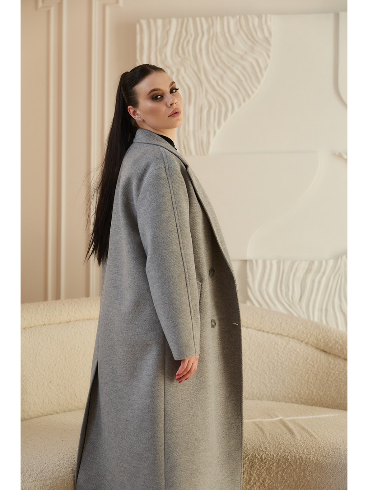Опис: Пальто двубортне, вільного крою, рукав- реглан, має декоративний шов на рукаві