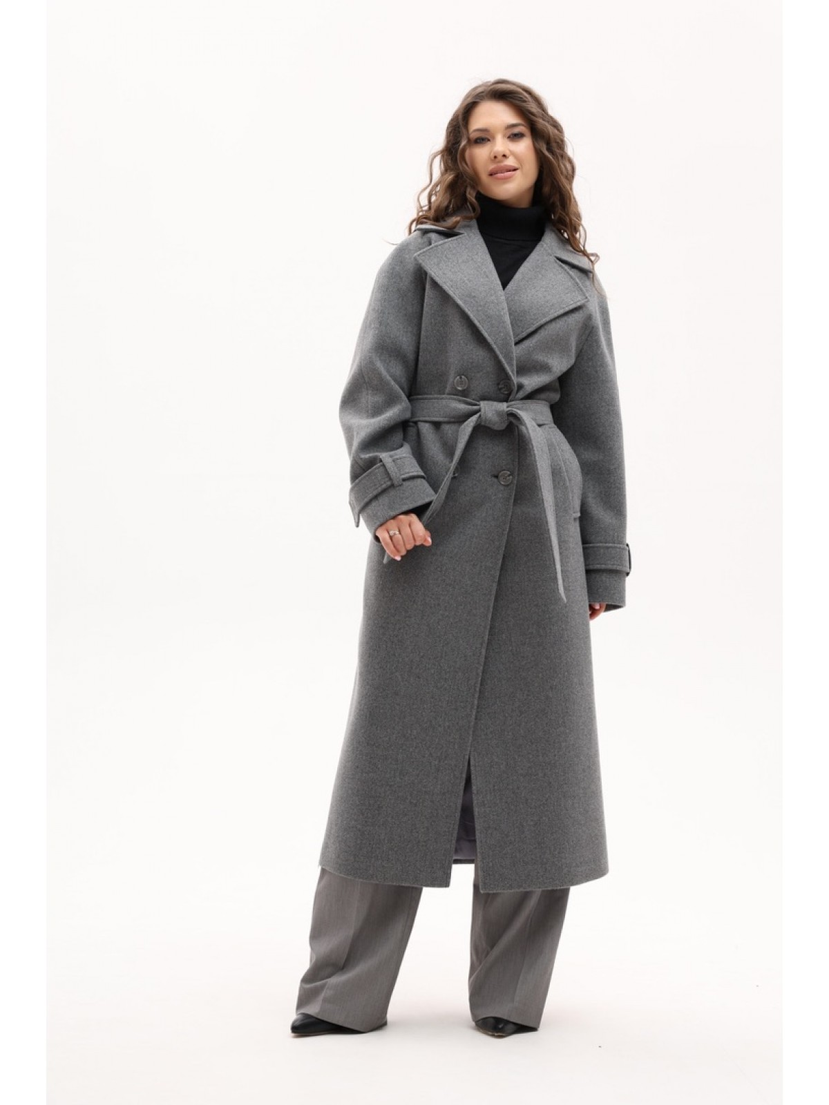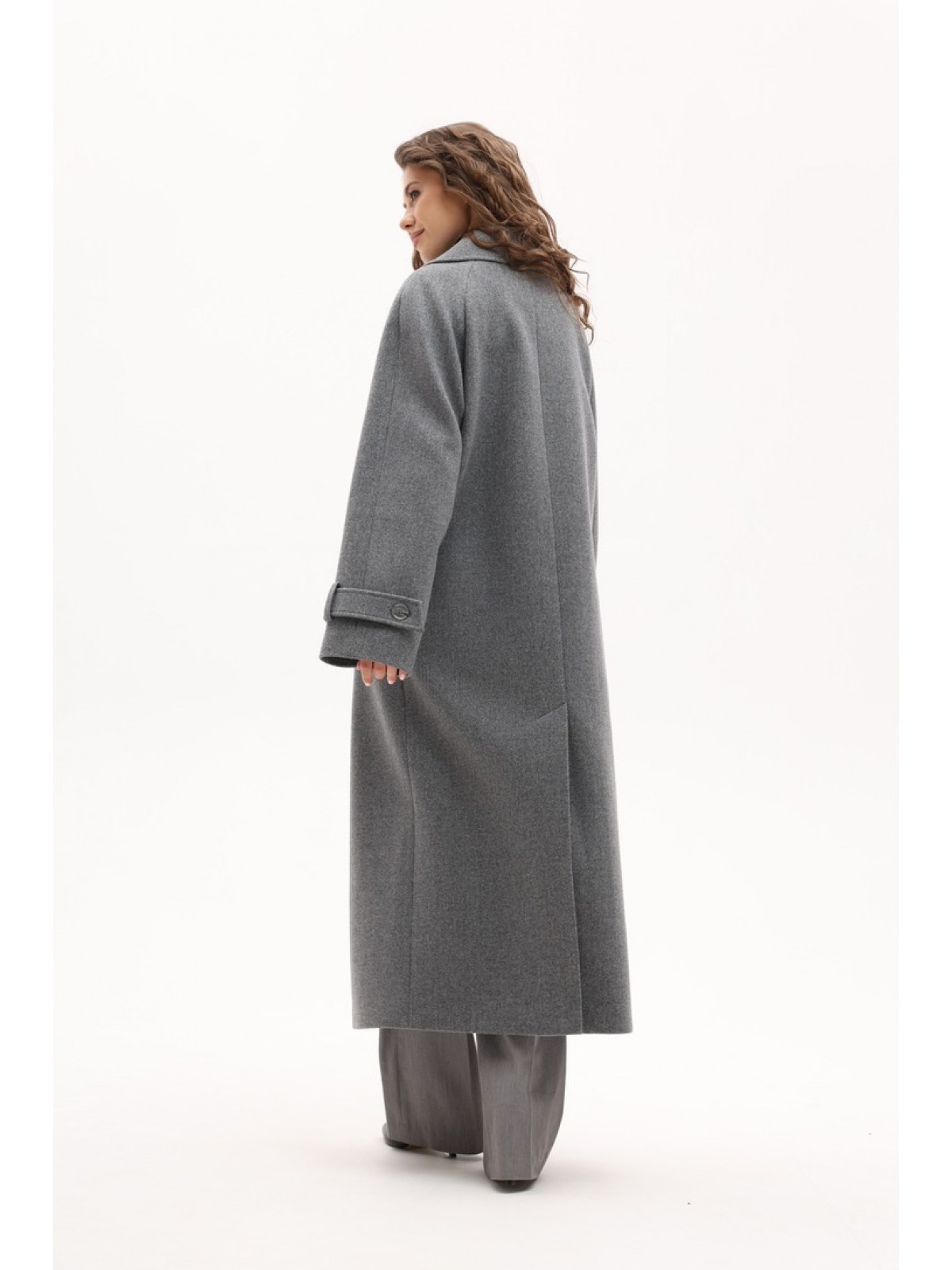 Пальто двубортне, вільного крою, рукав- реглан, великий англійский комір, на рукавах пати