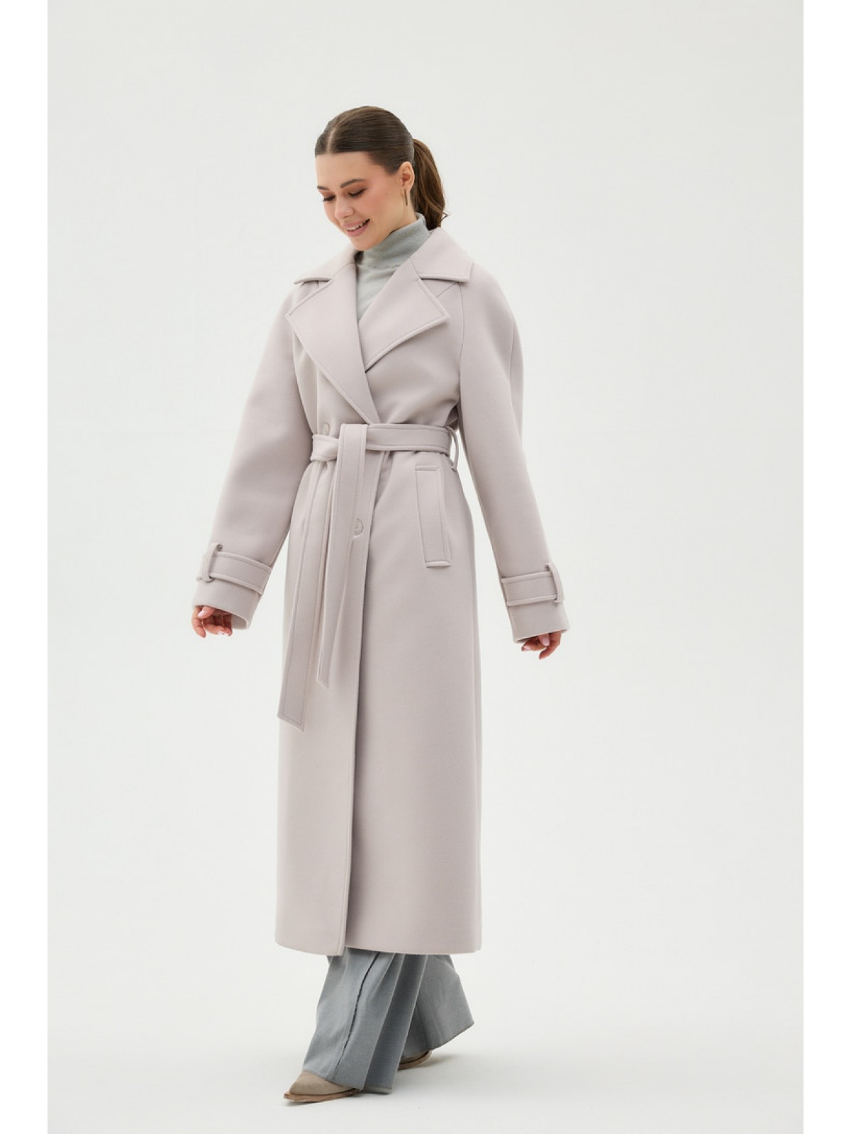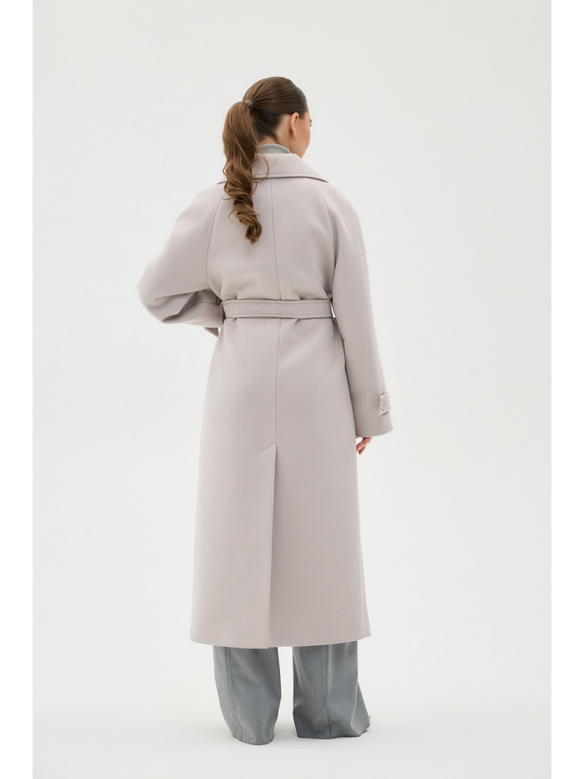 Пальто двубортне, вільного крою, рукав- реглан, великий англійский комір, на рукавах пати
