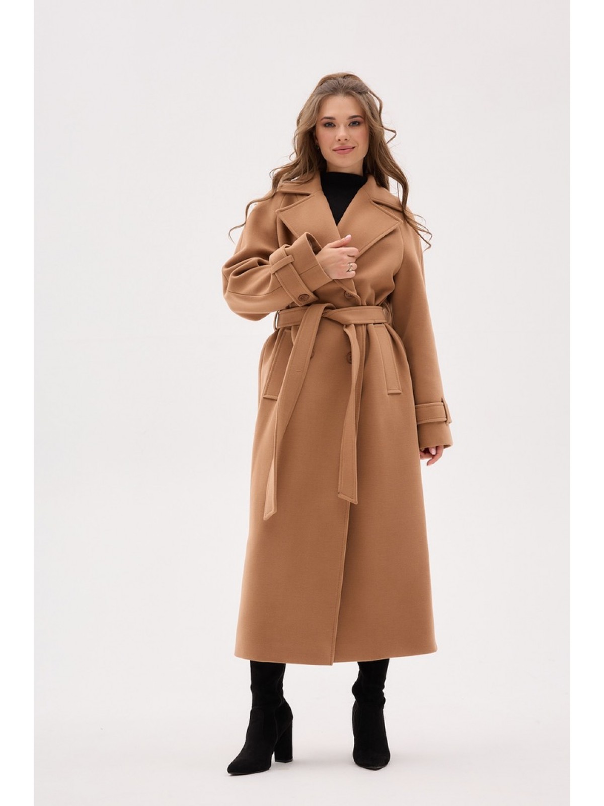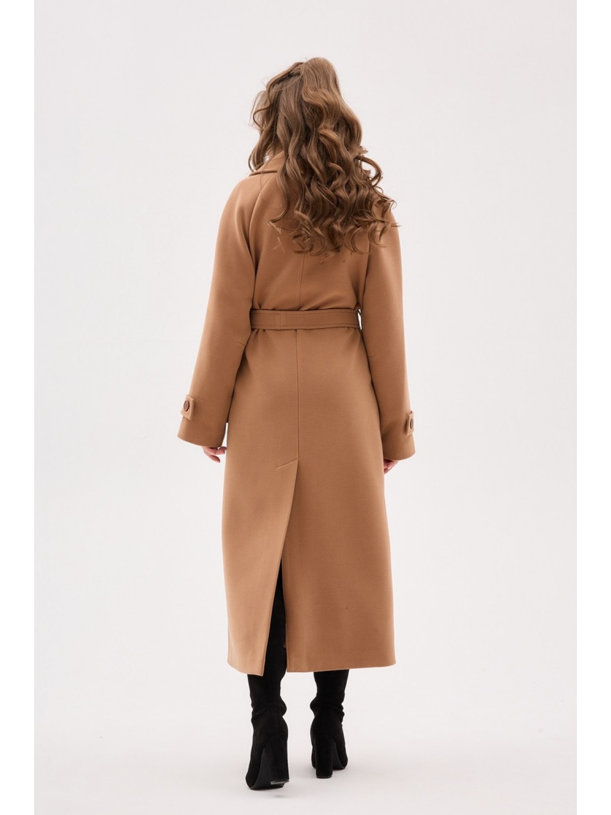 Пальто двубортне, вільного крою, рукав- реглан, великий англійский комір, на рукавах пати