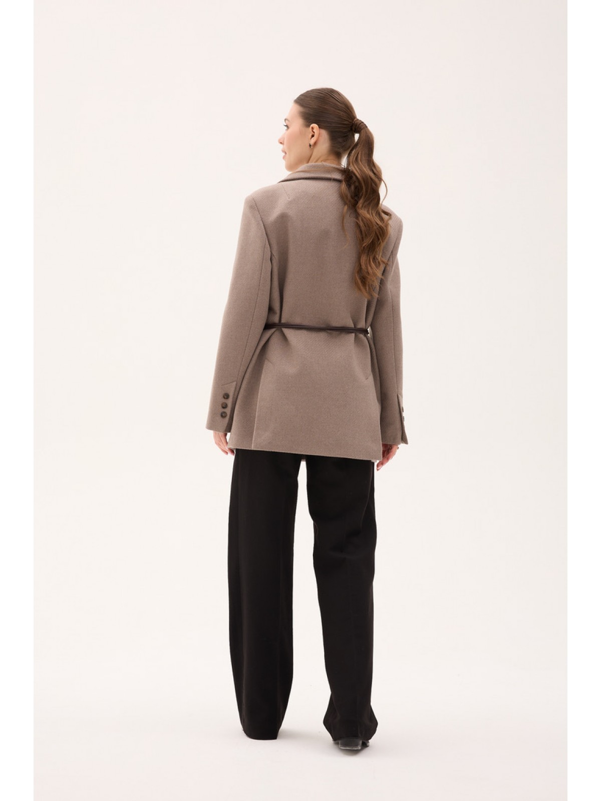 Пальто застібається на ґудзики та доповнене поясом, який дозволяє підкреслити талію та змінювати силует. Підкладка зі 100% поліестеру забезпечує комфорт під час носіння.