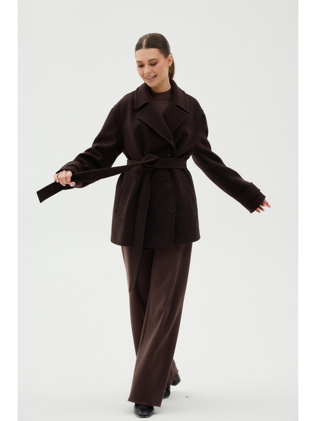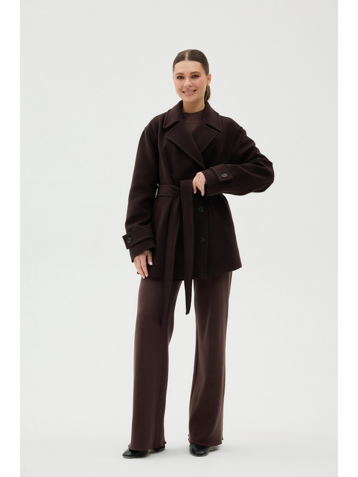 Пальто -бушлат, рівне, двобортне, рукав- втачний, кішені прорезні