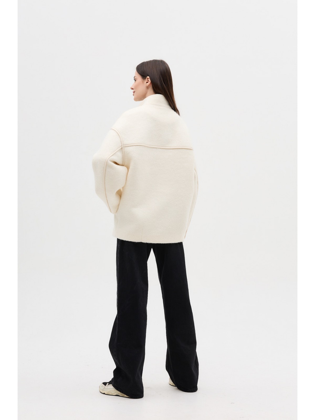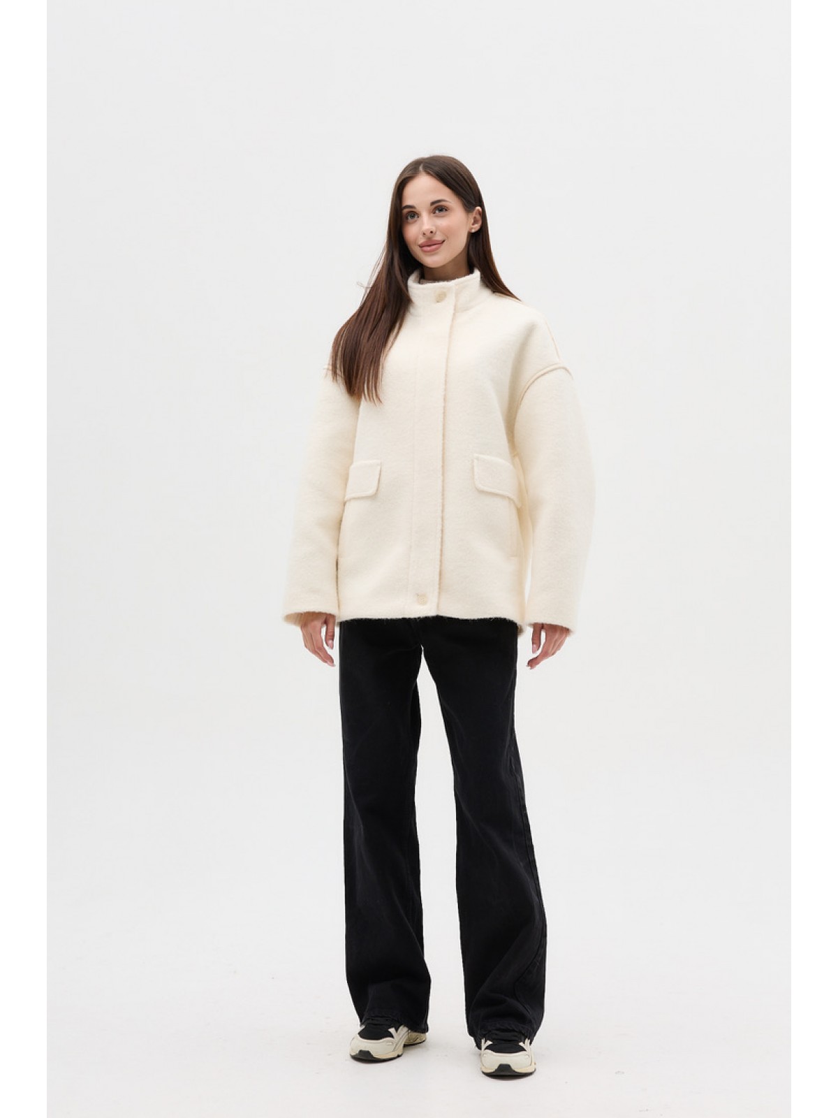Пальто-бомбер ,однобортне, вільного крою, зі спущеним рукавом, комір стійка, кішені клапани, оздоблювальні канти по швах