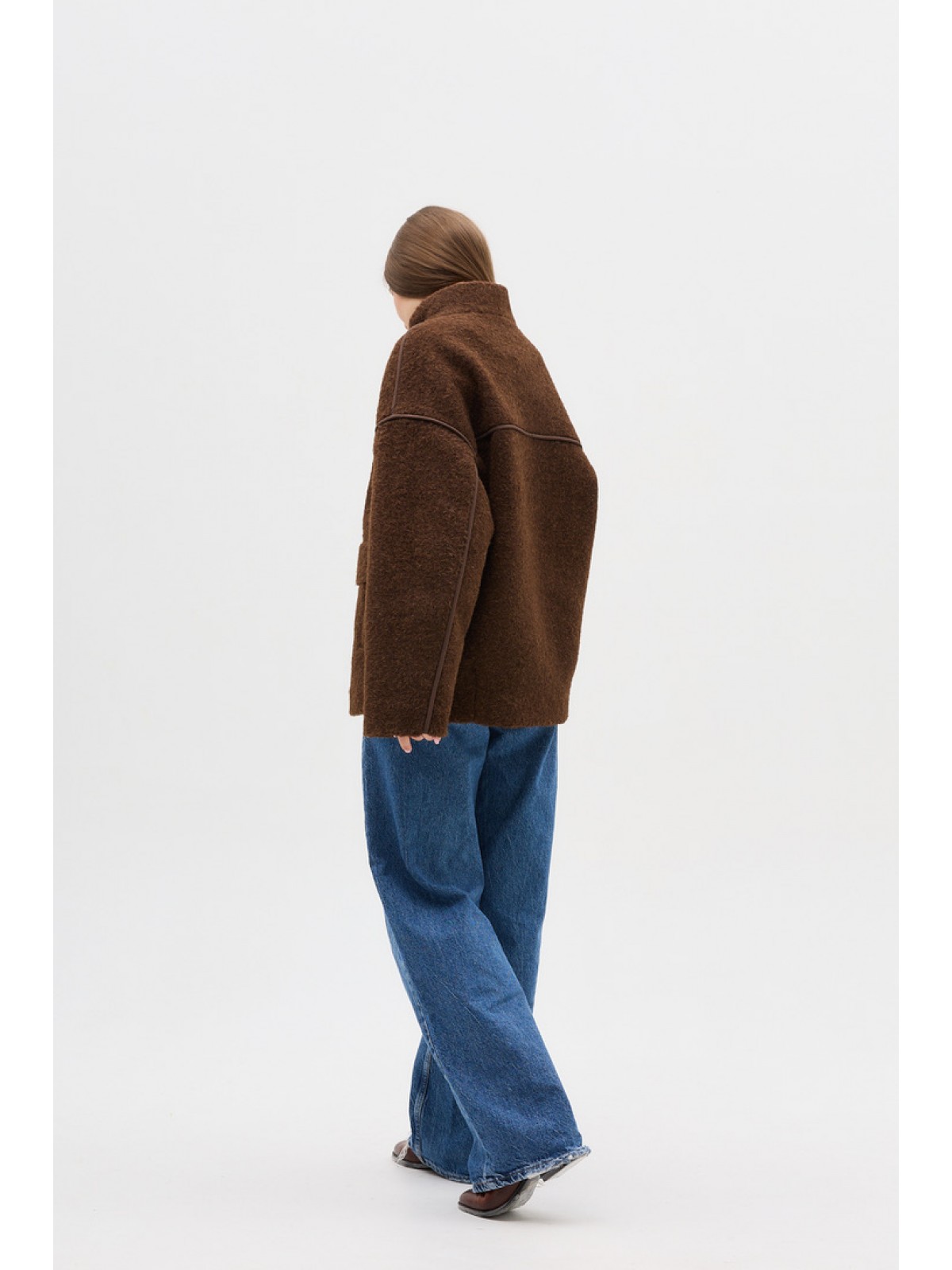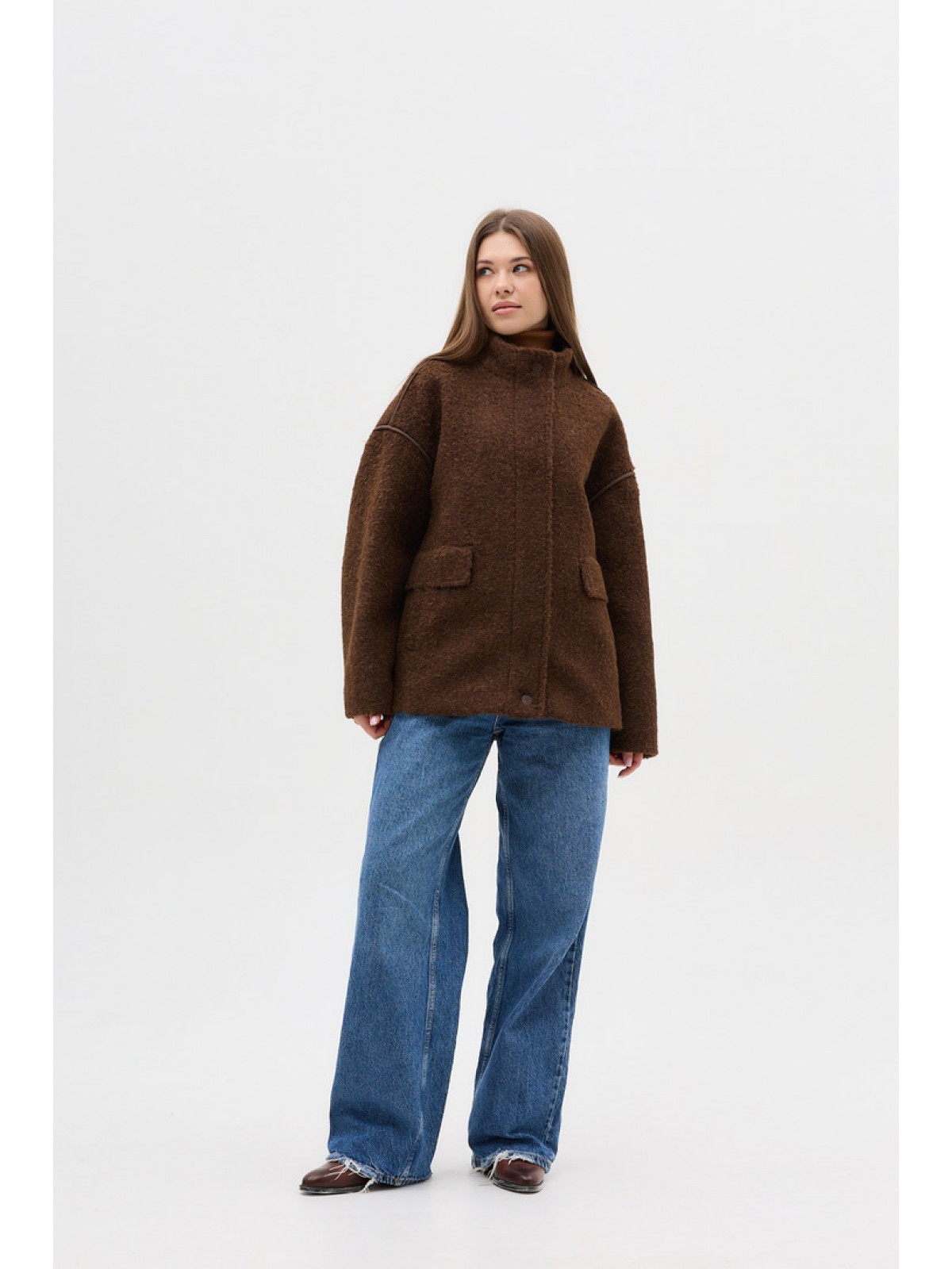 Пальто-бомбер ,однобортне, вільного крою, зі спущеним рукавом, комір стійка, кішені клапани, оздоблювальні канти по швах