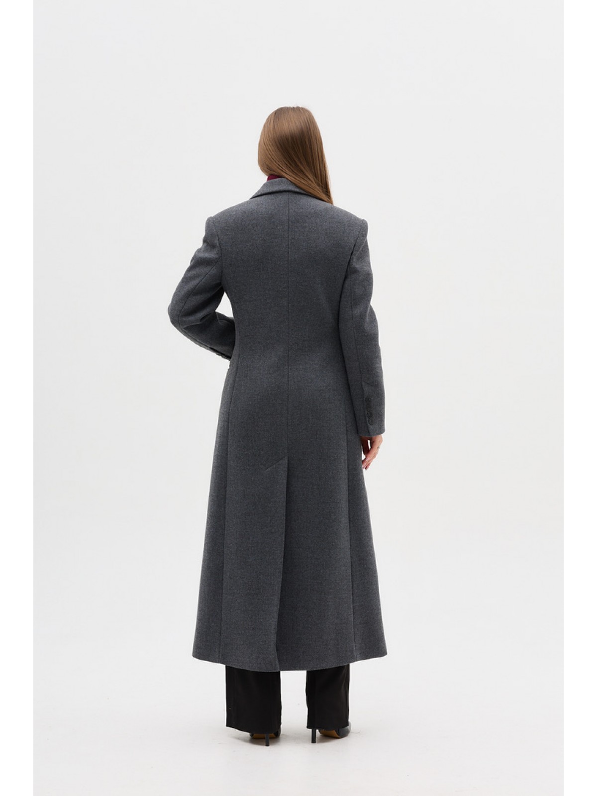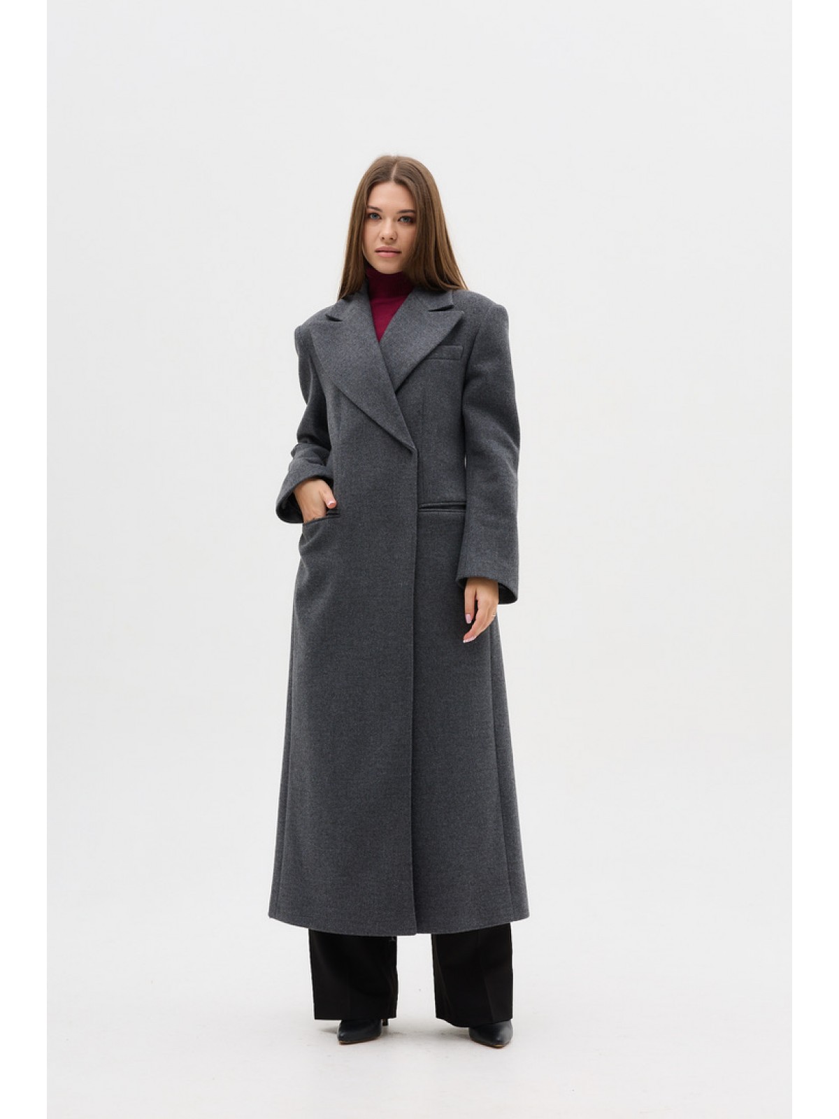 Напівпальо однобортне, приталене, з втачним рукавом, комір англіцський, кішені горизонтальні з клапанами