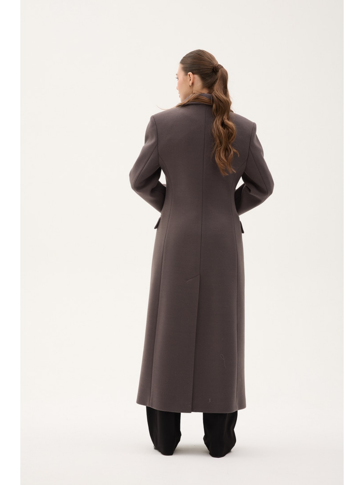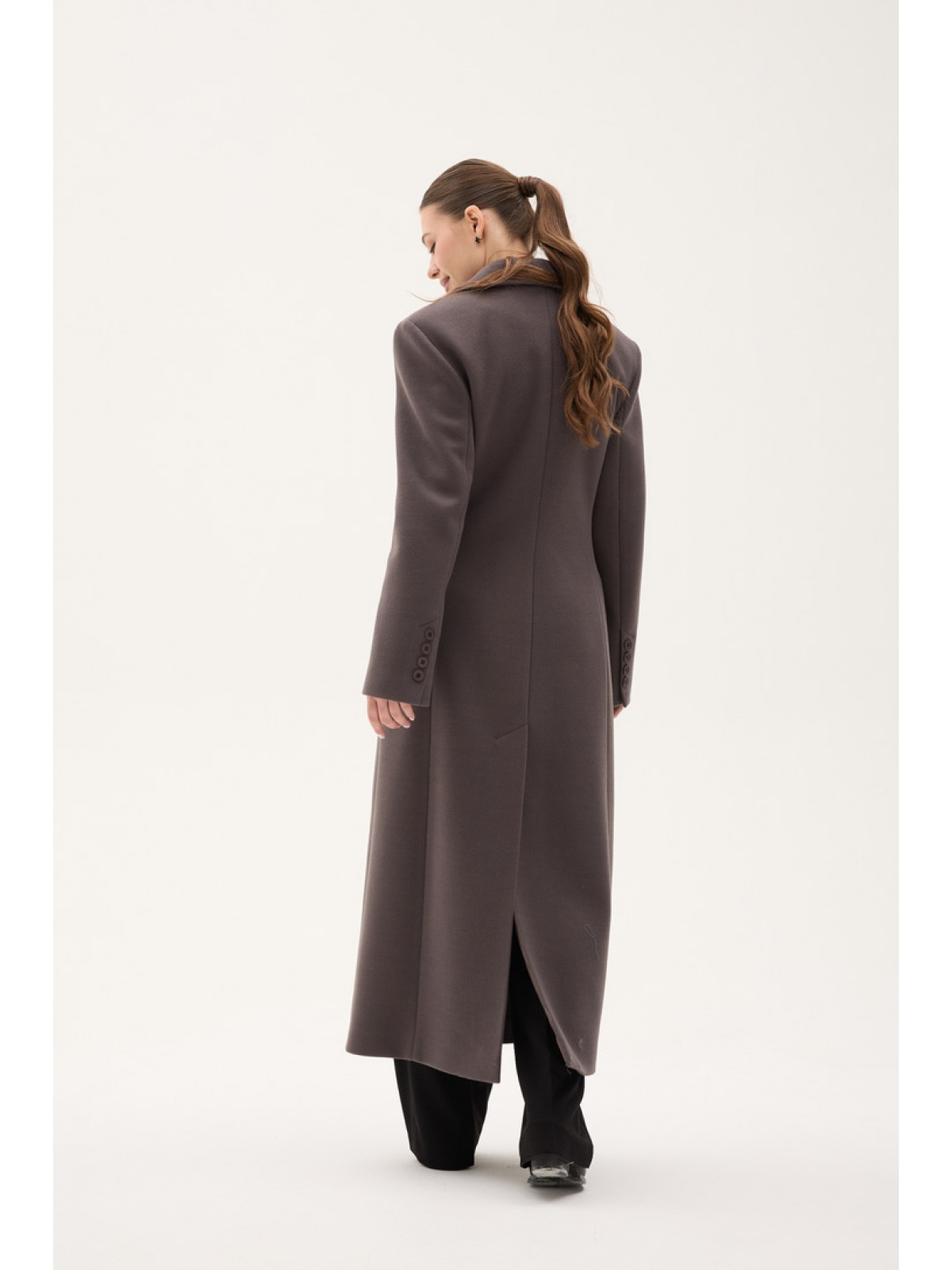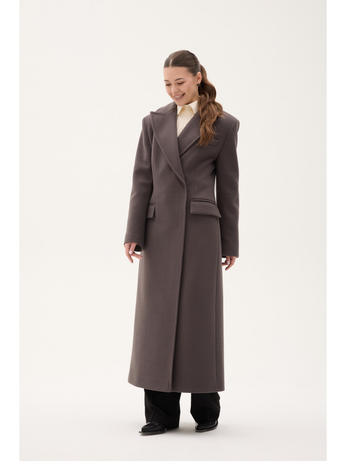 Напівпальо однобортне, приталене, з втачним рукавом, комір англіцський, кішені горизонтальні з клапанами