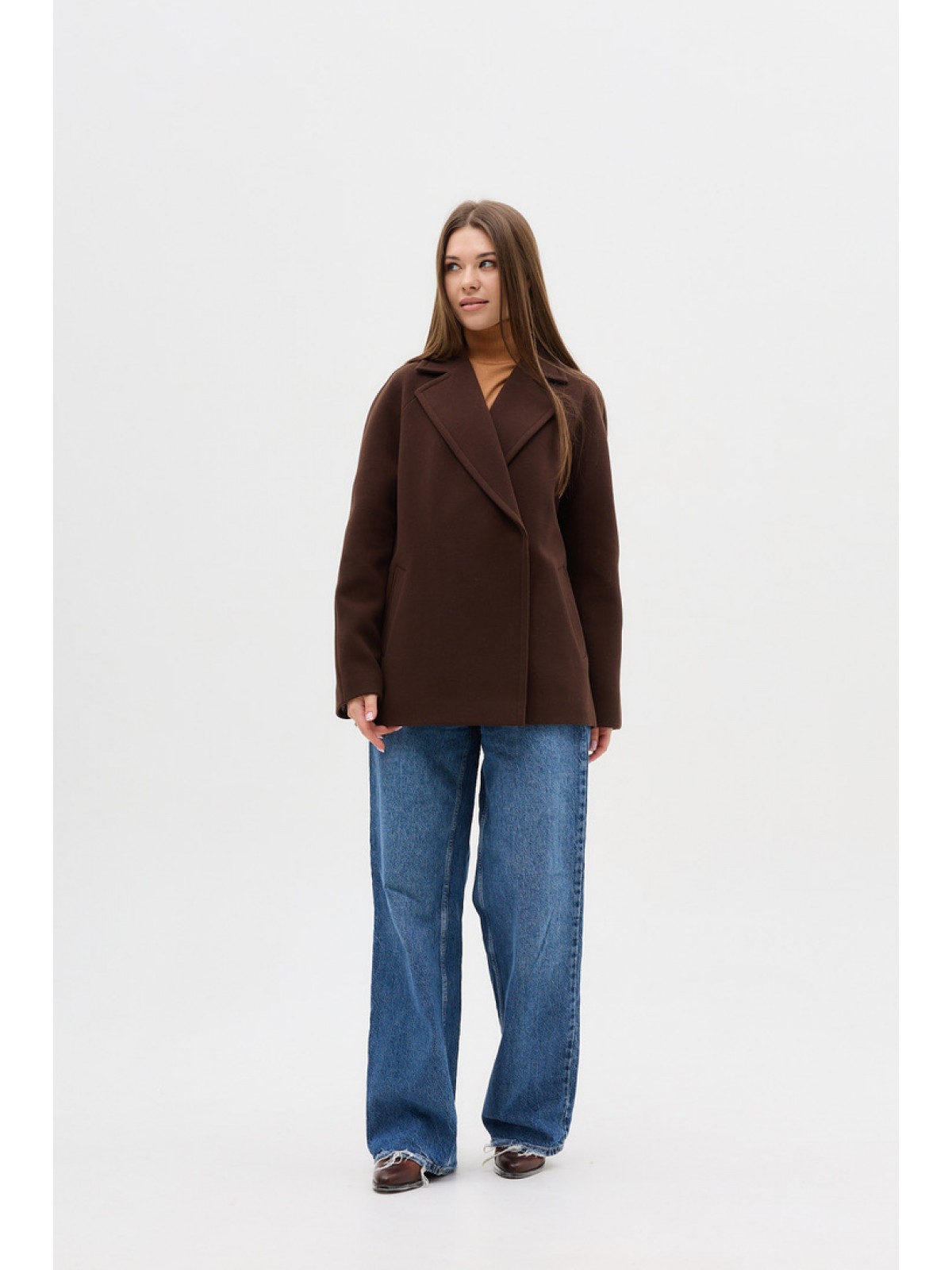 Напівпальо однобортне, рівного крою, рукав -реглан, комір англійський, кішені щелі